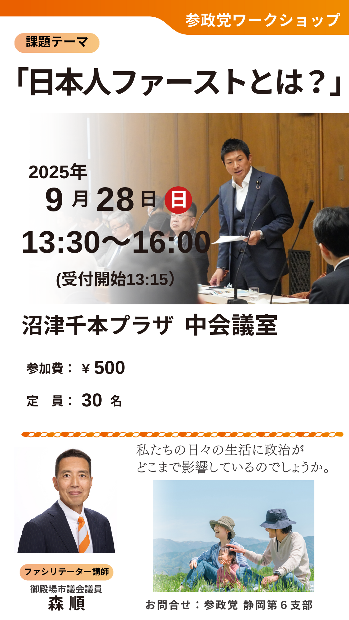 内容:ワークショップを通じて、様々な気付きを持っていただくプログラムになります。他の方のご意見も必ず学びに繋がります。